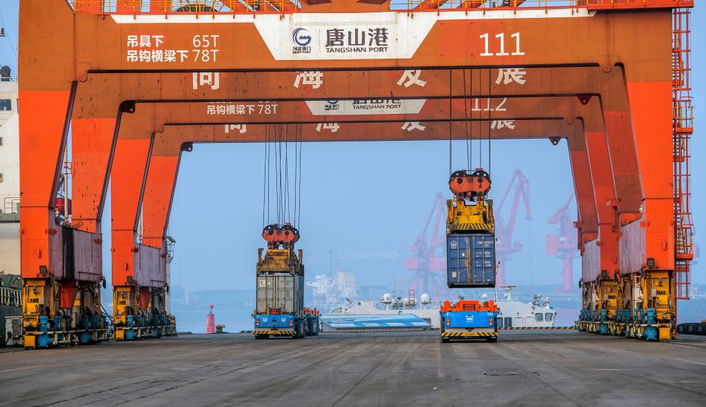 17日、唐山港京唐港区コンテナターミナル。(唐山=新華社配信/劉満倉)