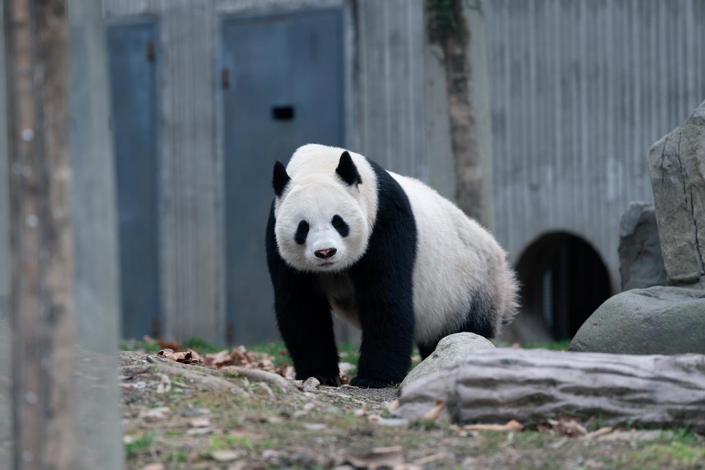 【新華社成都4月20日】中国四川省のジャイアントパンダ保護研究センター臥竜神樹坪基地で、パンダ「福鳳(フーフェン)」が敷地内を歩く様子が撮影された。