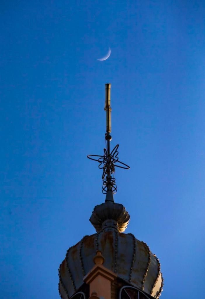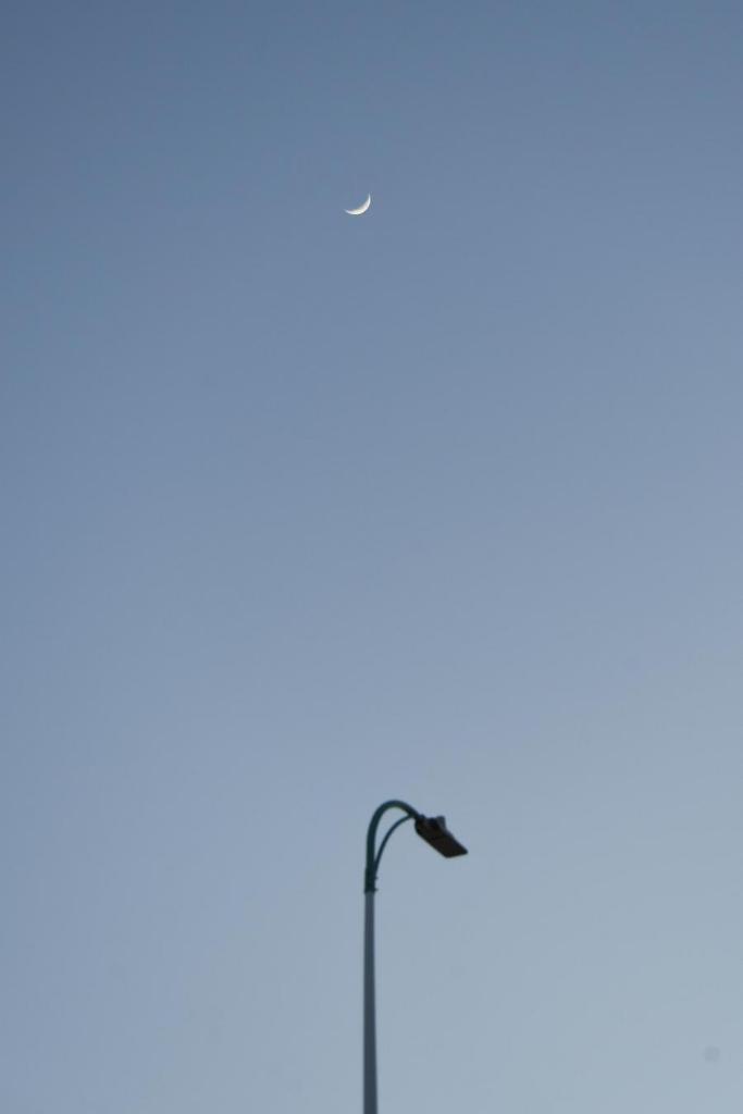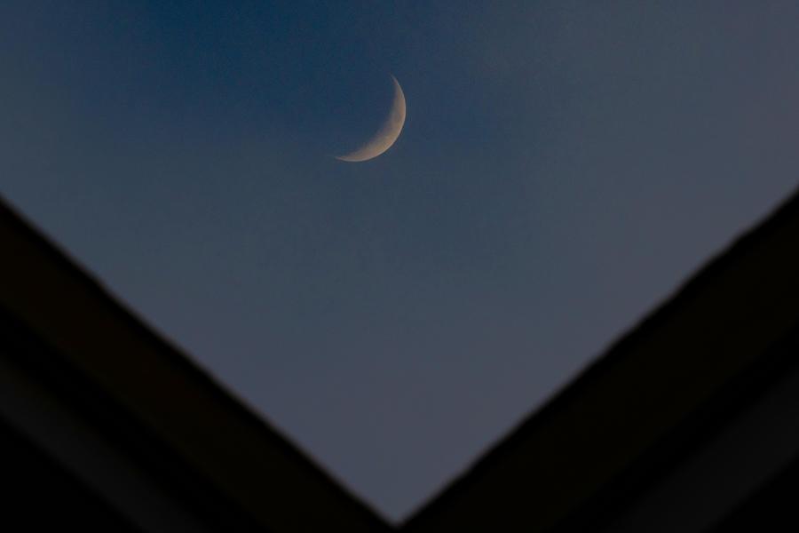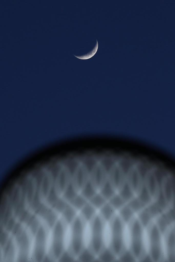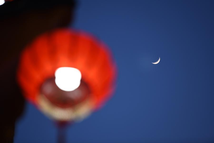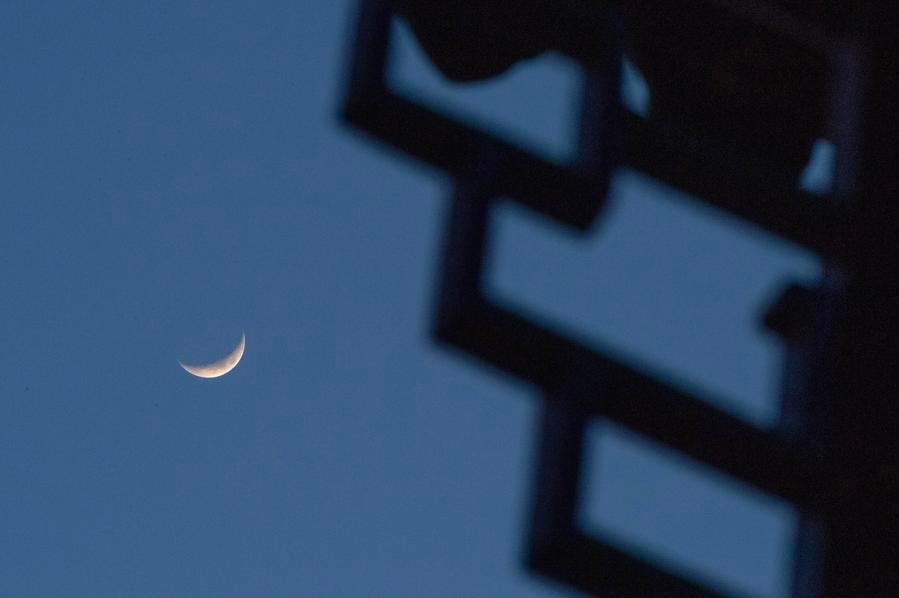 21日、黒竜江省大慶市の夜空に輝く三日月。(ハルビン=新華社配信/呉大勇)
