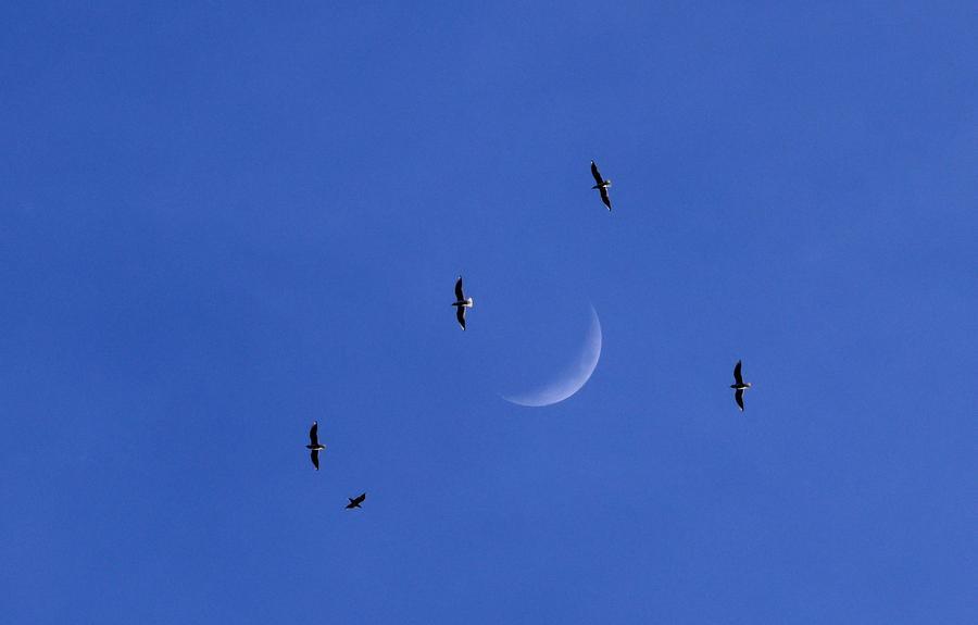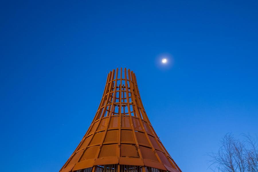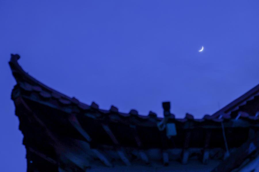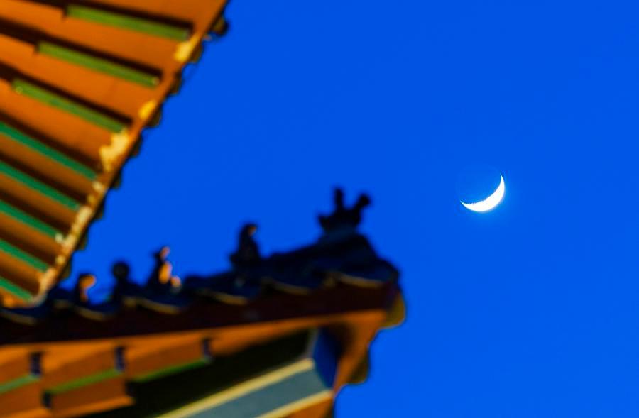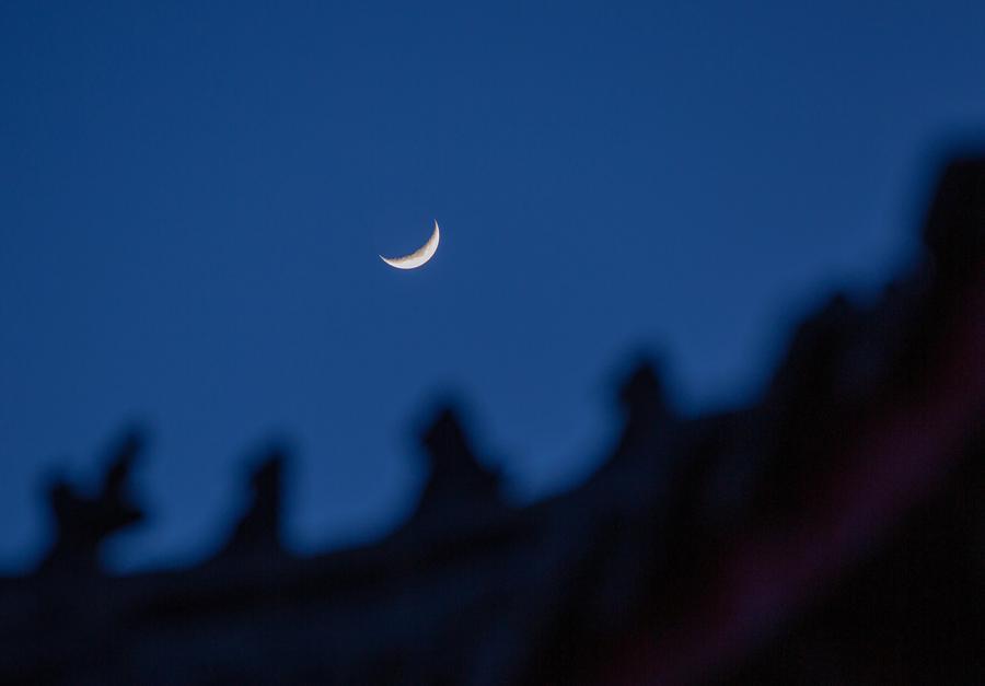 21日、黒竜江省チチハル市の空に輝く月。(ハルビン=新華社配信/宋燕軍)
