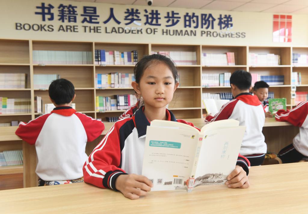 23日、河北省新楽市の新華路小学校で本を読む子ども。(新楽=新華社配信/賈敏傑)