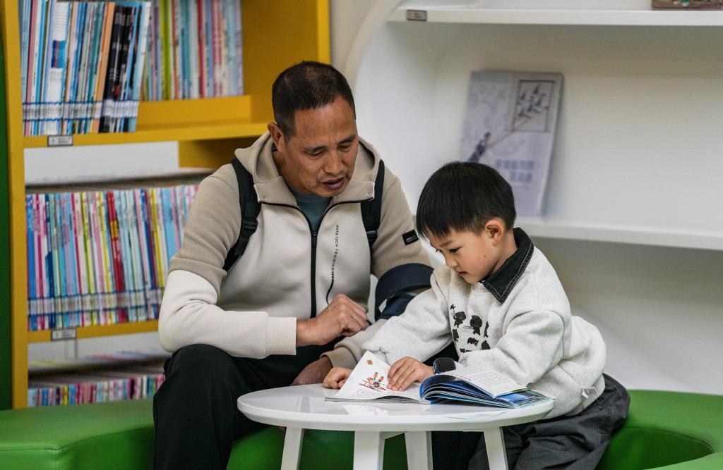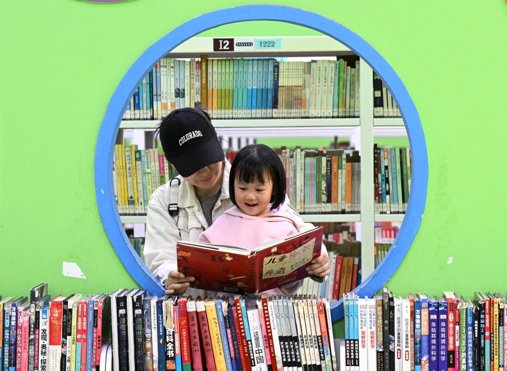 23日、貴州省貴陽市の貴州省図書館で本を読む親子。(貴陽=新華社記者/陶亮)
