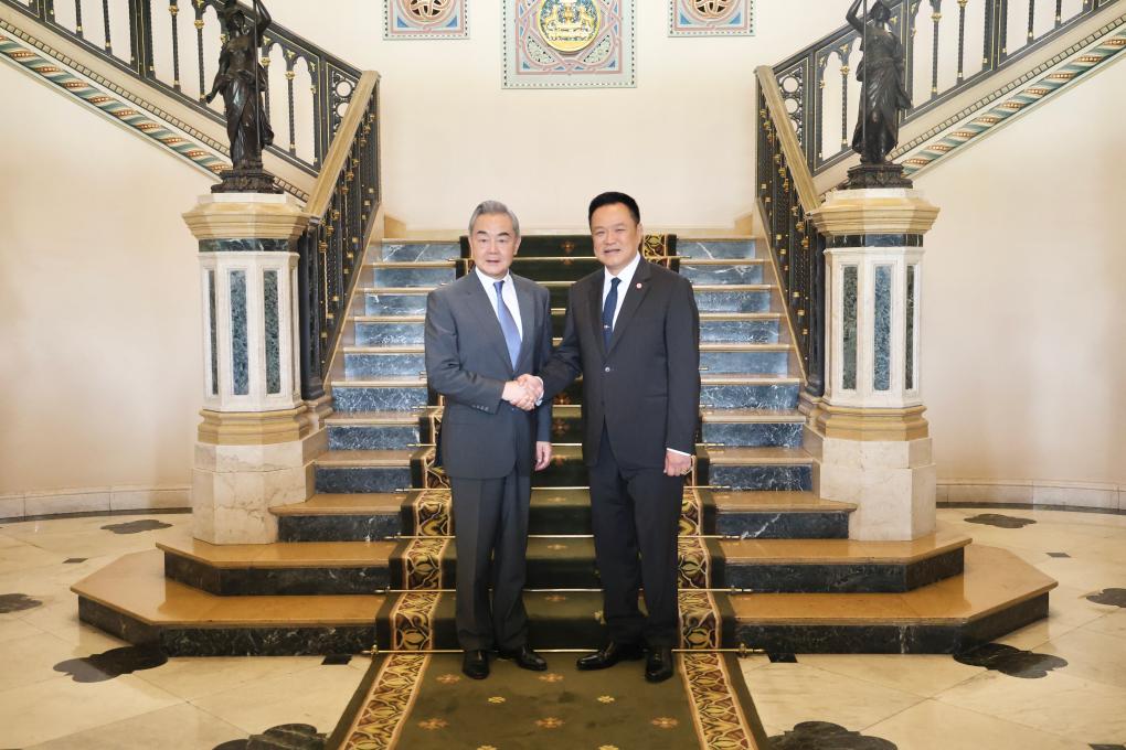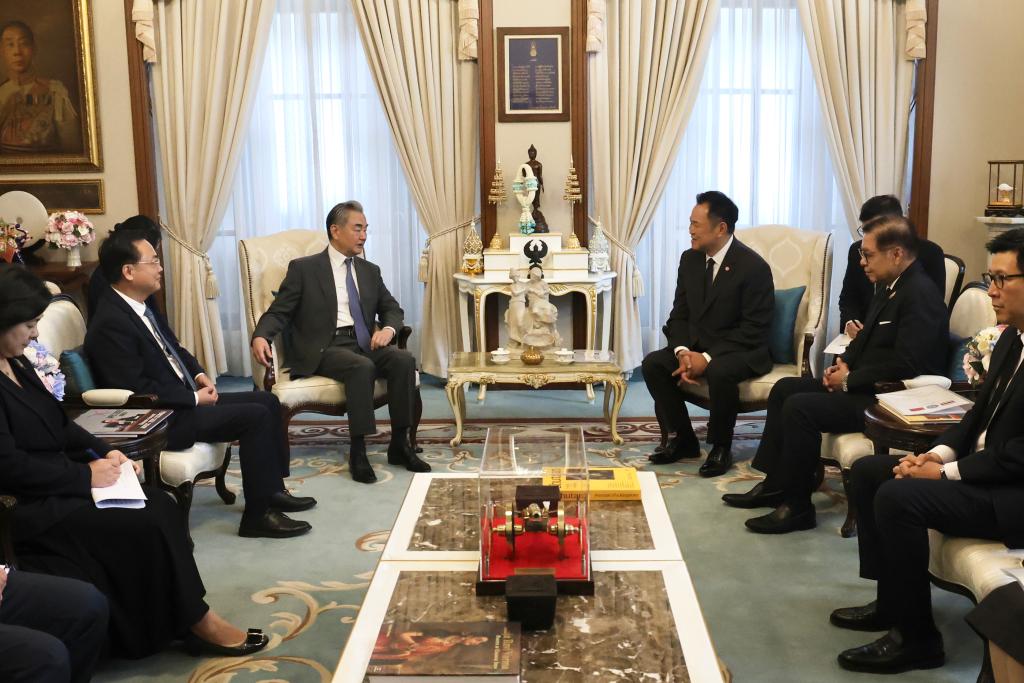 24日、アヌティン氏と会談する王毅氏。(バンコク=新華社記者/孫瑋彤)