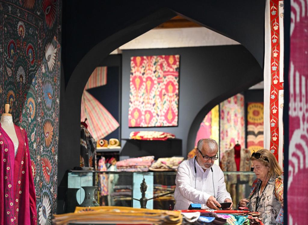 24日、ブハラの店で買い物する人々。(ブハラ=新華社記者/李任滋)