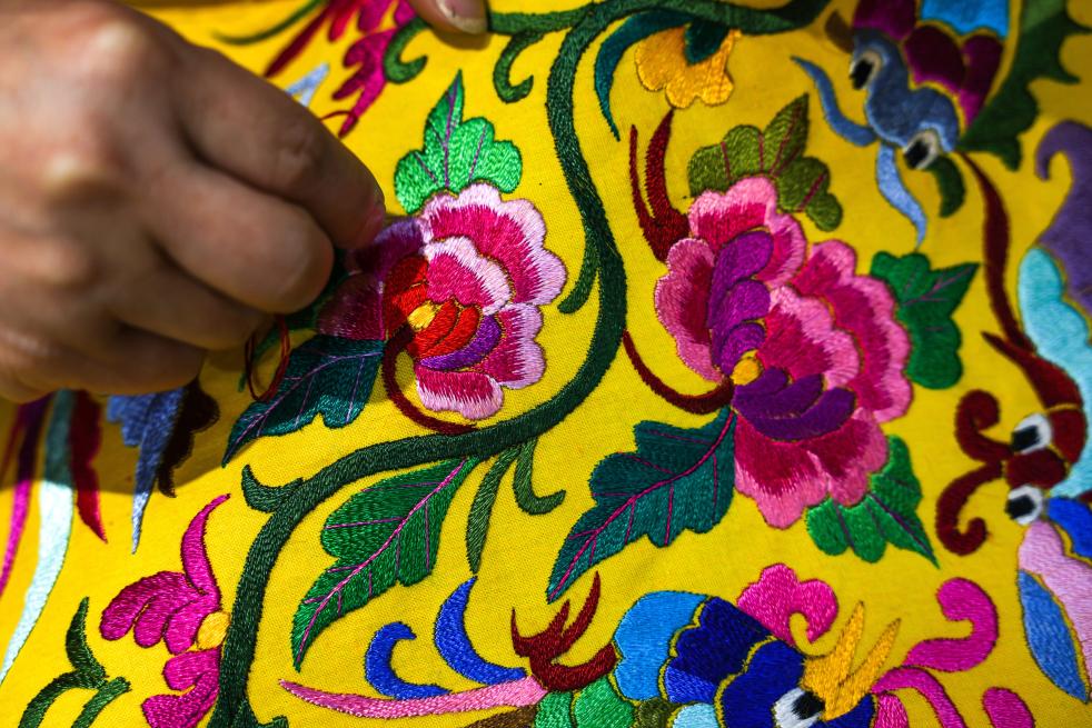 21日、肇興侗寨で刺繡を施す地元住民の手元。(黎平=新華社記者/楊文斌)