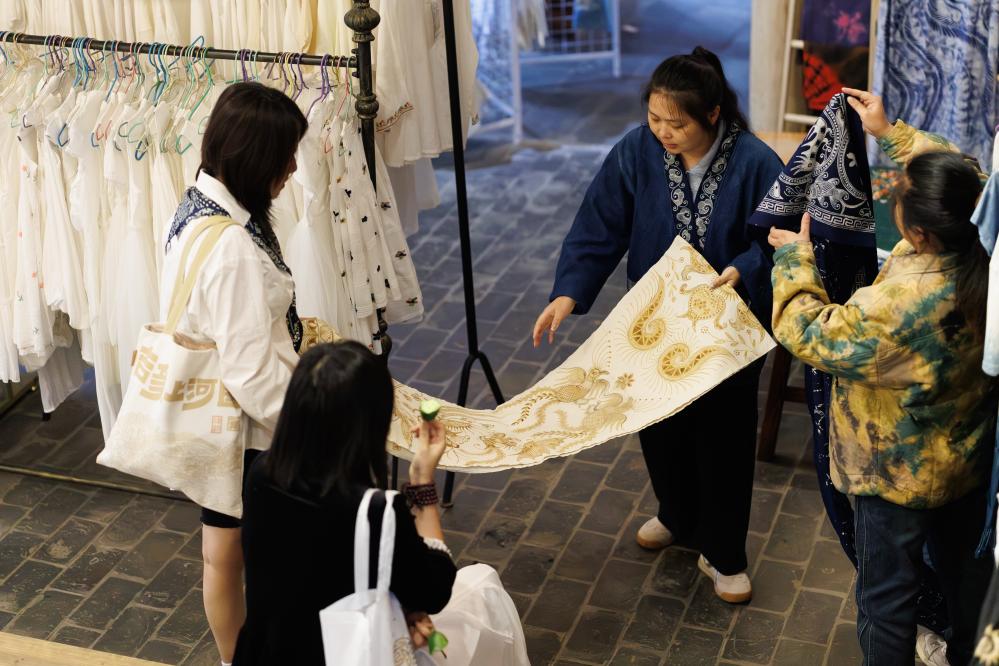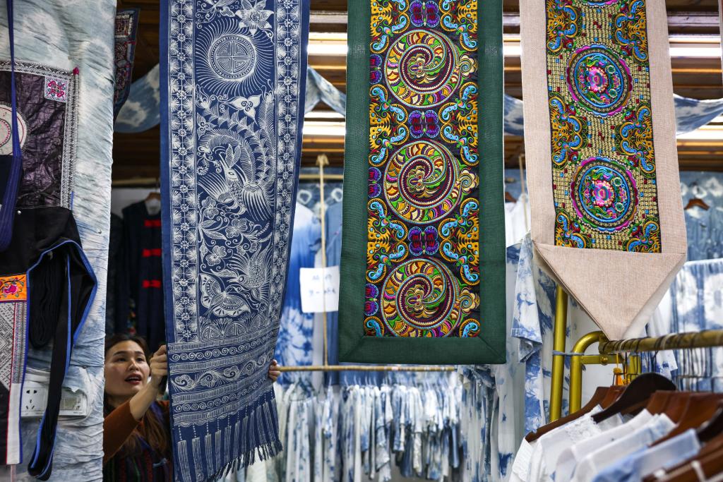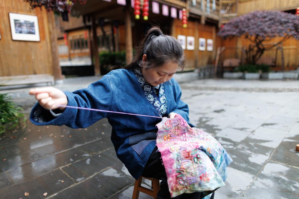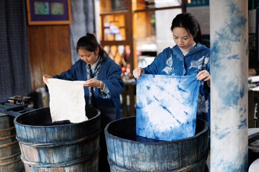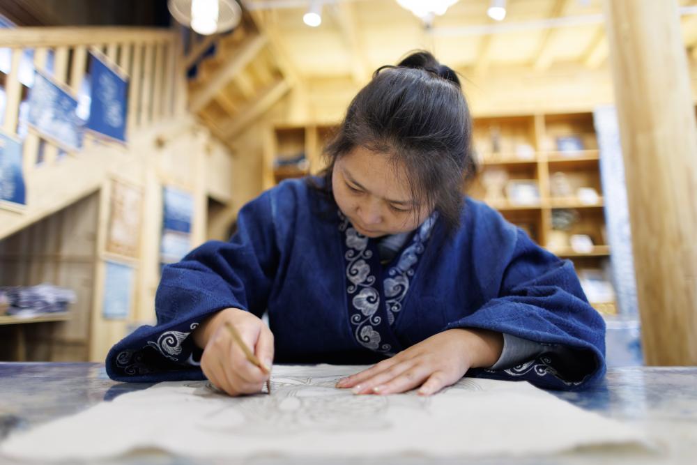 地元ではここ数年、合作社(協同組合)が中心となって技能訓練やブランド化運営などの取り組みを通じて、伝統工芸を地元から市場へと売り出している。多くのトン族の女性がこの取り組みに参加するようになり、職住近接で働き収入を増やしている。精巧な藍染めの布地や刺繡の装飾品は電子商取引(EC)や文化観光体験、受注生産などの販路を通じて各地で販売。伝統文化を守りつつ、人々の暮らしを経済面でも豊かにし、農村振興と共同富裕に資する特色ある産業となっている。