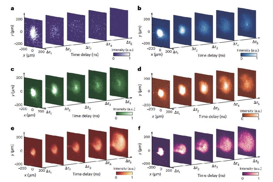 「電磁ソリトン」の多波長発光の時間変化を示した図。(上海=新華社配信)