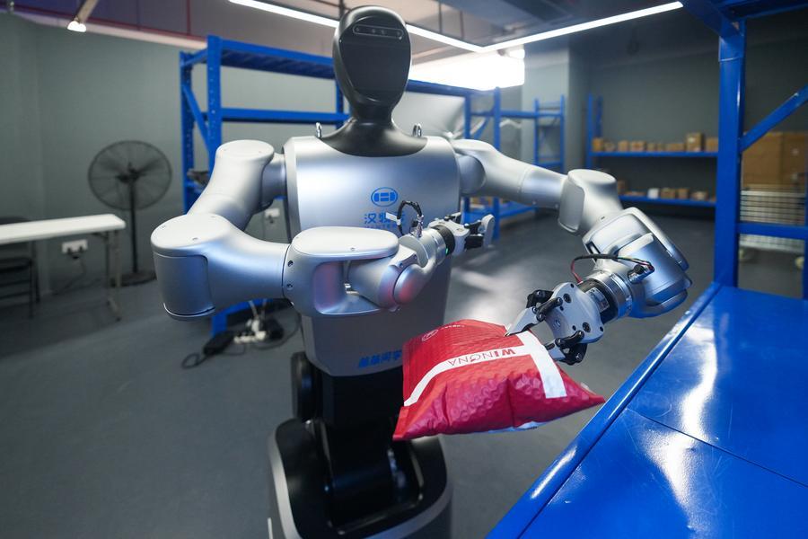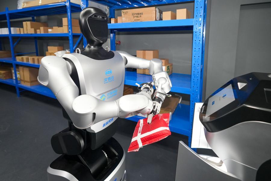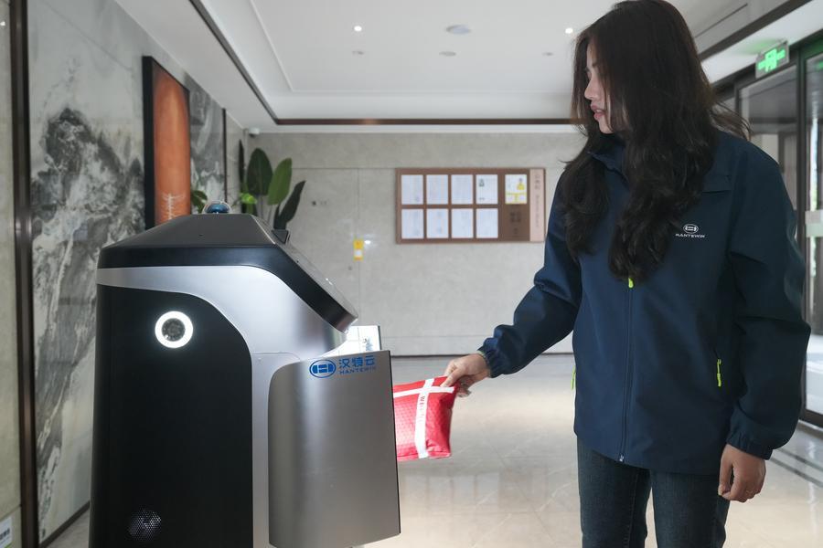 漢特雲は通信大手の中国移動通信(チャイナモバイル)と提携し、省内初の社区(コミュニティー)用スマートロボットステーションを構築。第5世代移動通信システム(5G)や人工知能(AI)などの技術を活用し、宅配便の配送やごみの戸別収集、小包の集荷・発送、無人清掃、防犯パトロールなどのサービスを提供する。宅配便が到着するとロボットが仕分けを行い、エレベーターを使って自律的に移動し、障害物を回避しながら配送を完了する。ロボットは日常生活のさまざまな場面で利便性向上に一役買っている。(記者/常博深、肖和勇)