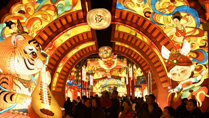 「春節カーニバル」開催、観光客が没入体験楽しむ 中国・湖南省炭河古城