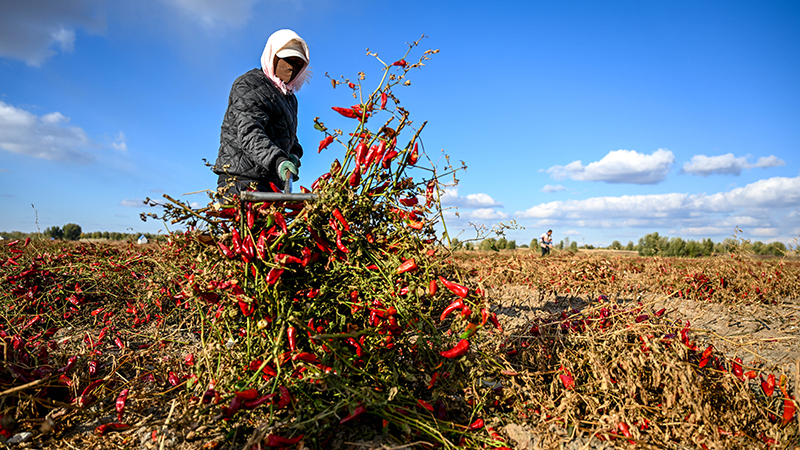トウガラシの収穫最盛期 中国・内モンゴル自治区開魯県