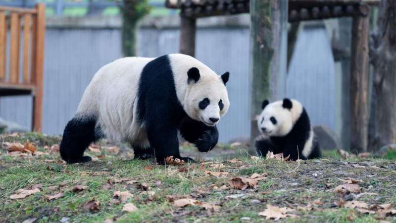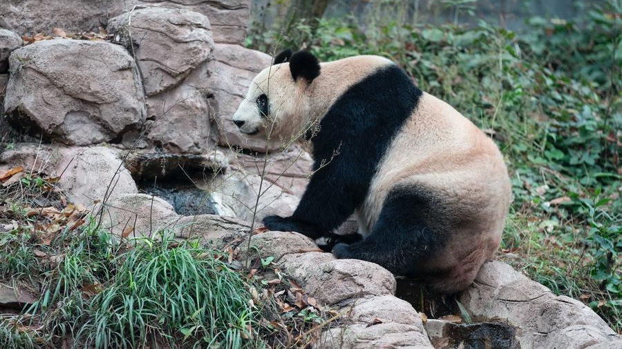 パンダの「珍珍」、のんびり散歩 中国四川省
