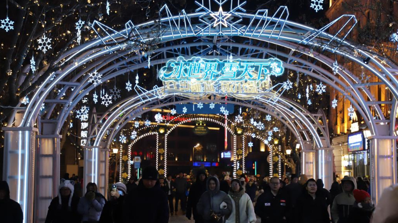 「氷の都」を彩る中央大街のイルミネーション 中国・ハルビン