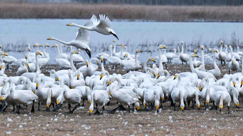 環境改善で多くのナベコウが飛来 中国河北省井陘県