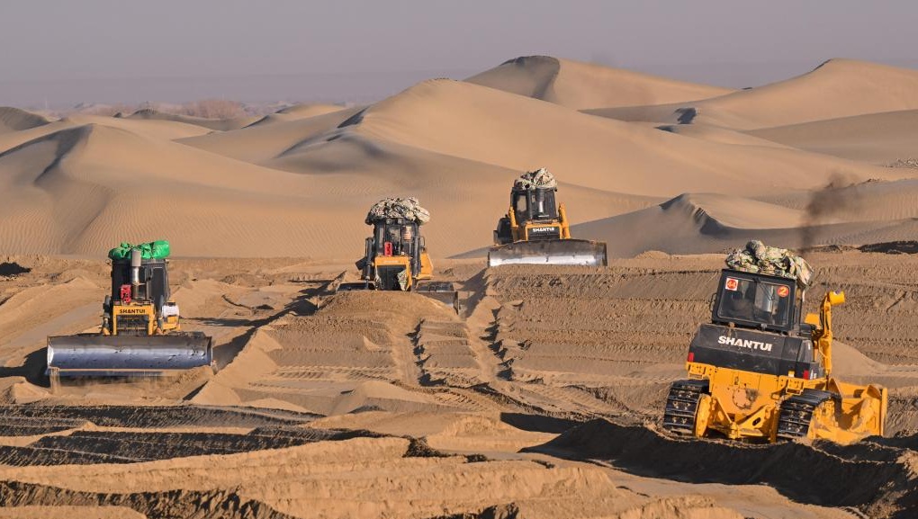 厳冬のタクラマカン砂漠で活気づく防砂事業 中国新疆ウイグル自治区