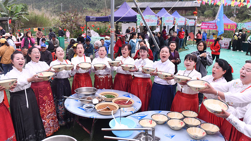 生地を押し出す「生搾米粉」 中国・広西の名物料理に