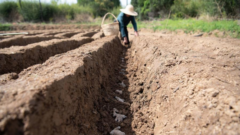 白ショウガの植え付け進む 中国・安徽省銅陵市