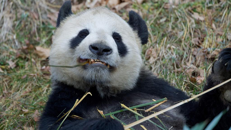 パンダのリーリー、丈夫な歯をアピール 中国四川省