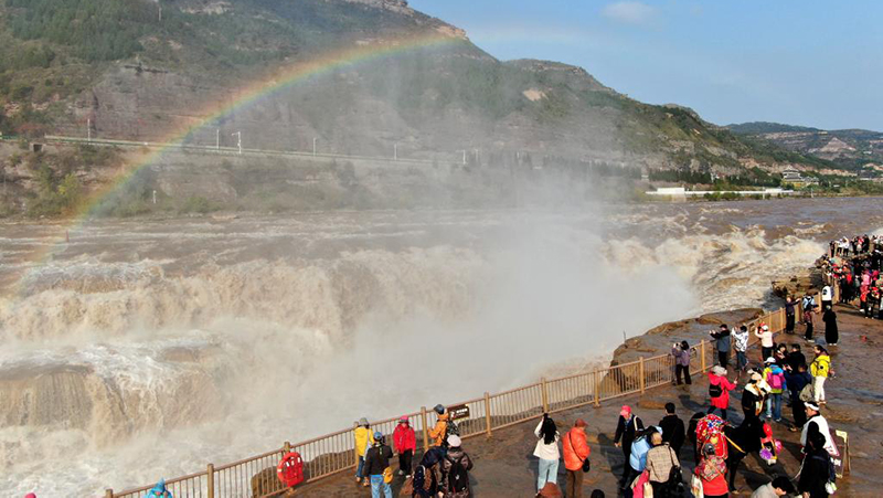 黄河壺口瀑布にかかる壮大な虹 中国山西省
