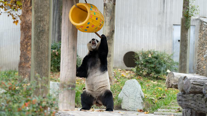 パンダのリーリー、のんびりお出かけ 中国四川省