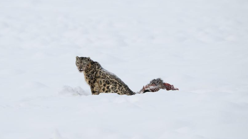 蓮宝葉則風景区で希少動物ユキヒョウを撮影 中国四川省