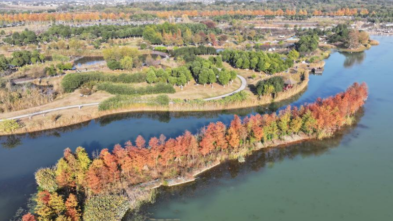 メタセコイア紅葉、鮮やかな風景に 中国・湖南省長沙市