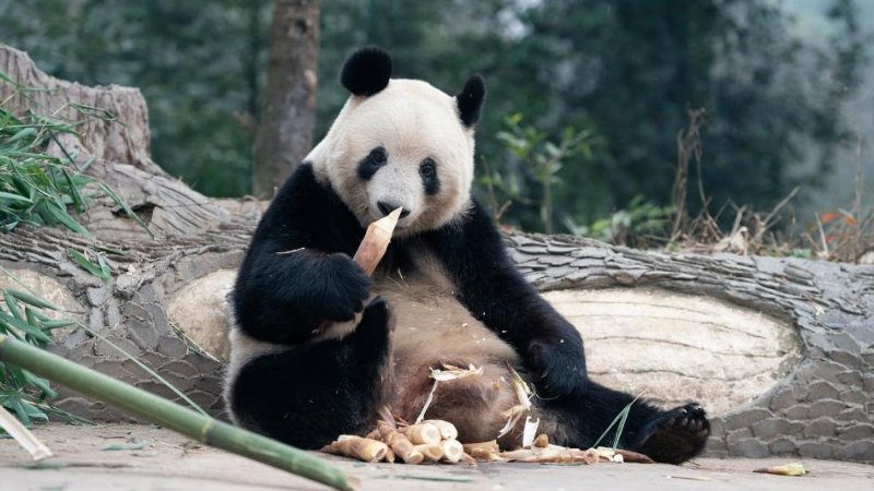 パンダのシャンシャン、竹をバリバリ 中国四川省