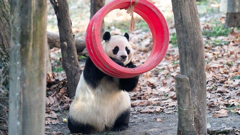 パンダの「小奇跡」、元気に遊ぶ 中国四川省