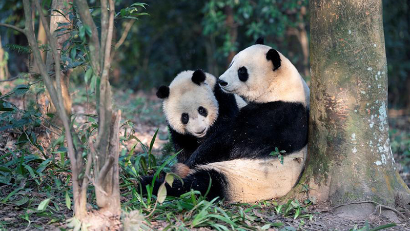 パンダの「珍珍」と「芊喜」、今日も仲良し 中国四川省