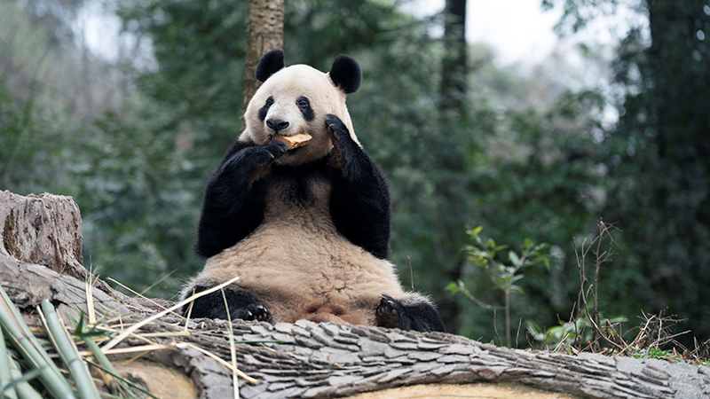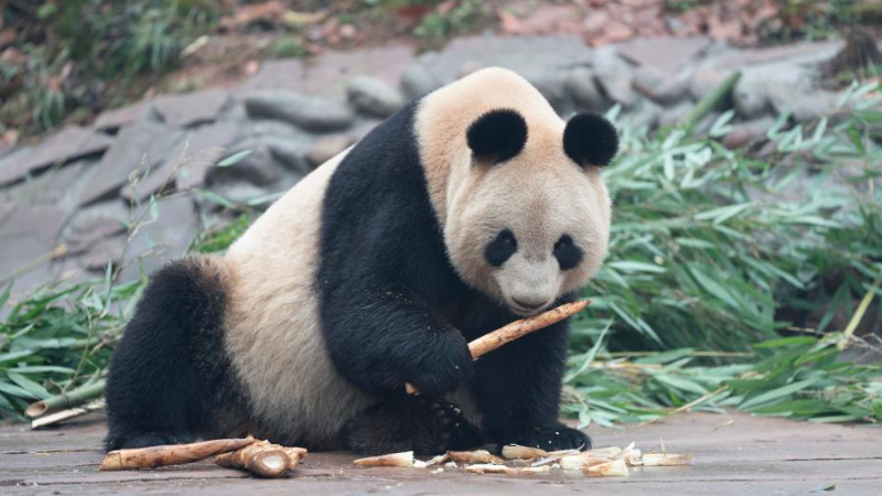 パンダのシャンシャン、蒸しパンを堪能 中国四川省